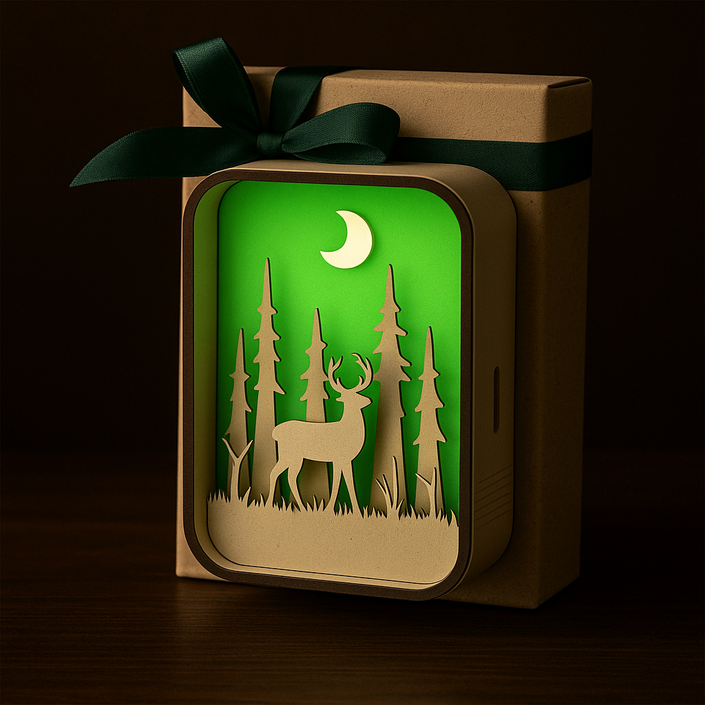 Made from rich basswood and black walnut, this night light carries the quiet beauty of nature into any space.